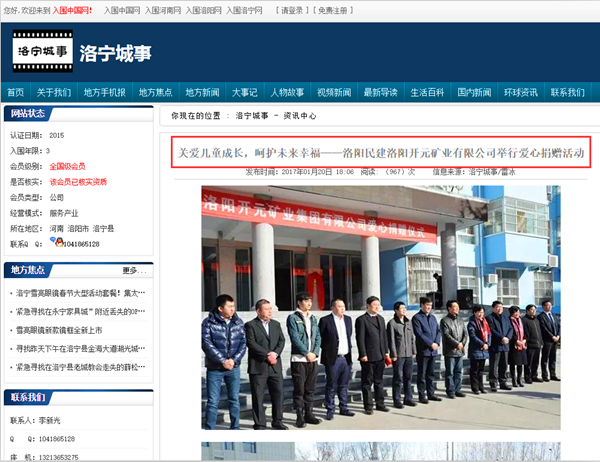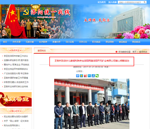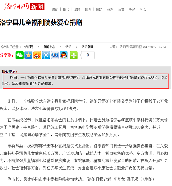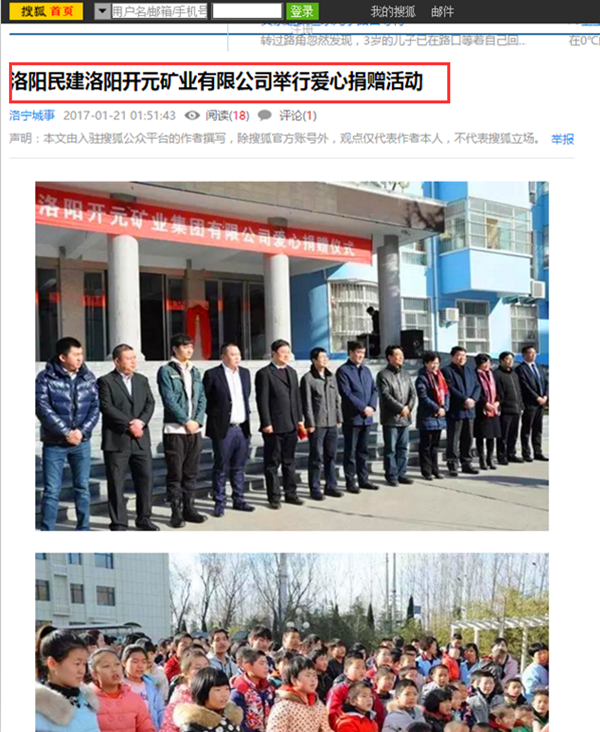 弘揚(yáng)社會(huì)正能量 愛(ài)心事業(yè)美名揚(yáng)——洛陽(yáng)開(kāi)元礦業(yè)集團(tuán)善舉引起國(guó)內(nèi)各大媒體高度關(guān)注